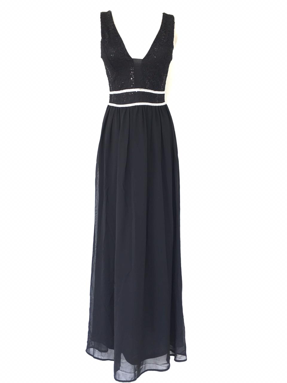 Vestido corto halter negro con impresionante bordado floral en hilo dorado y blanco en el bajo. Transparencia sutil y cinturón de satén. Obra de arte para las ocasiones más especiales.